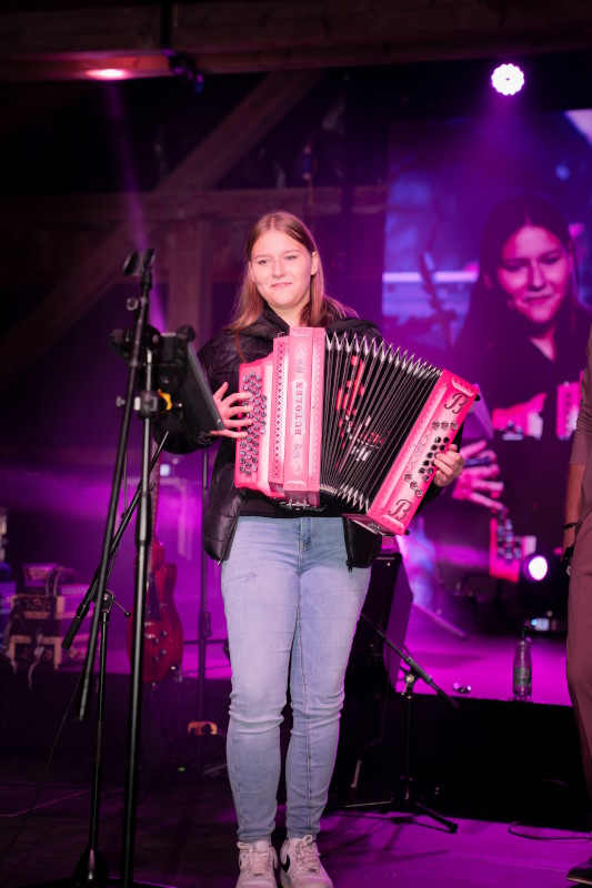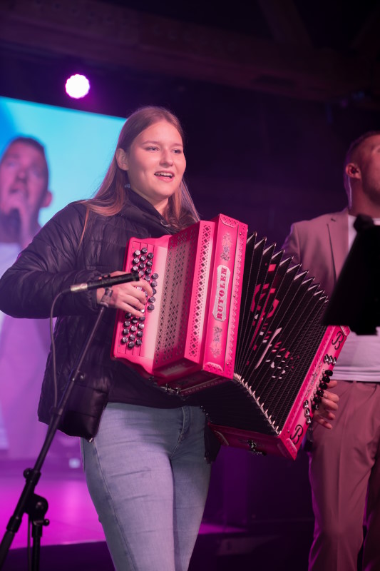 Razigrani so podarili tudi "Roziko", njihovo znano roza harmoniko, ki jih je krasila do sedaj. Šla je v roke mladi Korošici, ki si jo ob svoji pretresljivi zgodbi definitivno zasluži. Skupaj s člani ansambla je pred množico ljudi zaigrala dve skladbi.